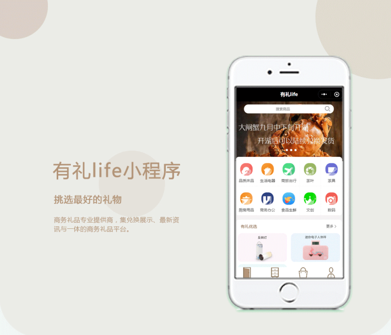 有禮life小程序挑選最好的禮物商務禮品專業提供商,集兌換展示、 最新資訊與一體的商務禮品平臺。